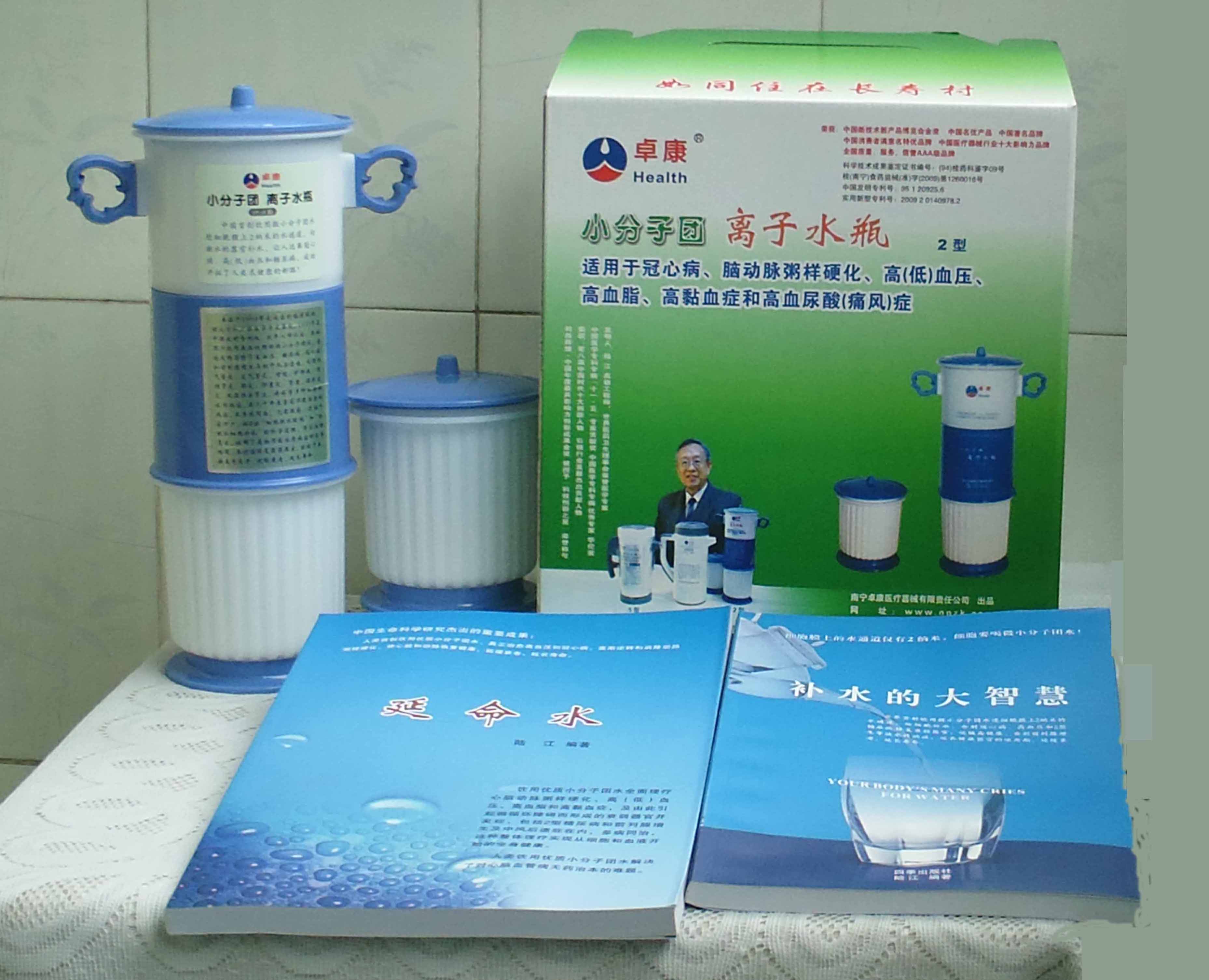 -----我是從事建筑的高工,本來沒有資格去攻克醫(yī)學(xué)難題,卻為了自身健康才扣響醫(yī)學(xué)的大門。由于我1990年患高血壓,因怕中風(fēng)才研究發(fā)明了離子水瓶,我把水處理成微小分子團(tuán)水,飲用后治愈了高血壓。便于1993年底送到三家省級醫(yī)院做臨床試用4個月。經(jīng)北京和廣西醫(yī)學(xué)專家鑒定:"降脂降壓效果好"," 能擴(kuò)大心腦動脈流量,改善心腦電圖以及微循環(huán)","對治療心腦動脈粥樣硬化、高血壓、高血脂有良好的醫(yī)療保健作用。""產(chǎn)品的技術(shù)性能和療效達(dá)到了同類產(chǎn)品的國內(nèi)領(lǐng)先水平,經(jīng)廣西醫(yī)學(xué)科學(xué)情報研究所檢索,未見國外有類似報道。"中國醫(yī)學(xué)科學(xué)院張正國教授從美國國立醫(yī)學(xué)圖書館數(shù)據(jù)庫存Medline檢索英俄文資料,均未見類似報告。2000年上市后,我為了對消費者負(fù)責(zé)而繼續(xù)觀察研究,一直通過《信譽(yù)卡》和《質(zhì)量跟蹤調(diào)查書》向患者承諾療效,請用戶使用6個月后反饋效果。和脂壓患者飲用2至5個月內(nèi),消除癥狀,停服藥物,血壓正常;冠心病患者飲用3~5個月逐漸減輕至消除心絞痛、房顫等癥狀,不再服藥,飲用1年左右心電圖正常,經(jīng)冠脈造影掃描無明顯狹窄,表明冠心病痊愈。大量患者還反映許多衰弱器官被修復(fù),讓前列腺增生、慢性咽喉炎、慢性氣管炎、支氣管炎、慢性胃炎、腸炎和膽囊炎等不藥而愈;2型糖尿病患者是因為胰島衰弱致病,飲用該水半年至一年,逐漸減藥至停藥,血糖尿糖正常,真正治愈2型糖尿病。中風(fēng)后遺癥患者飲用六七個月,可逐漸減輕至消除肢體和語言障礙,表明飲用該水能讓壽命很長的神經(jīng)元細(xì)胞逐漸修復(fù),奇跡般地恢復(fù)肢體和語言功能。飲用后還使胸腺和脾臟兩個重要的免疫器官被修復(fù)和增強(qiáng),產(chǎn)生免疫細(xì)胞多,提高了免疫力,使人不生病或少生病。自此, 飲用微小分子團(tuán)水創(chuàng)造了攻克冠心病、高(低)血壓和糖尿病三大醫(yī)學(xué)難題的奇跡。人們對此感到不可思議,但實踐是檢驗真理的唯一標(biāo)準(zhǔn)。